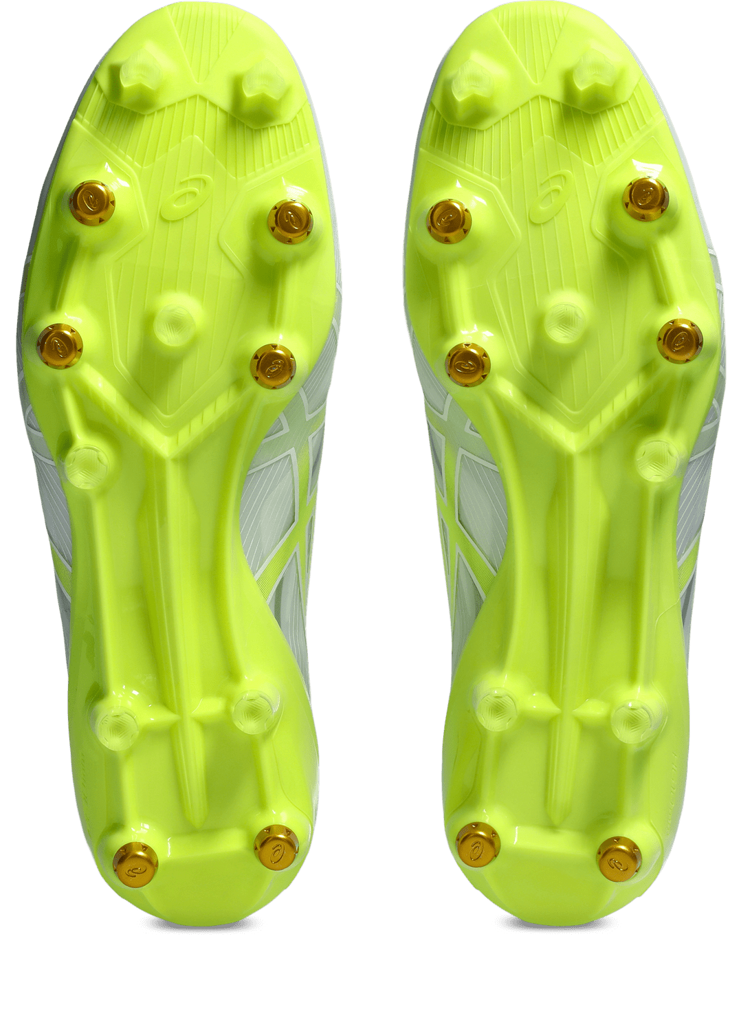 Forward propulsion sole with metal studs: The design of the acceleration studs at the toe, along with the nylon ribs at the midfoot, facilitates smoother and more efficient movements. The metal interchangeable studs enhance grip on soft or slippery surfaces during gameplay.